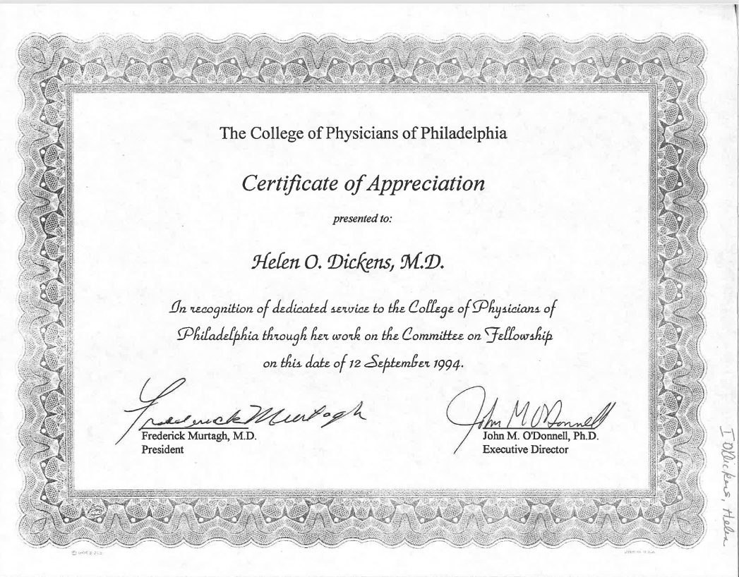 Pray, Rusty. “Helen Dickens, 92, a pioneer in obstetrics.” Philadelphia Inquirer, December 6, 2001.
