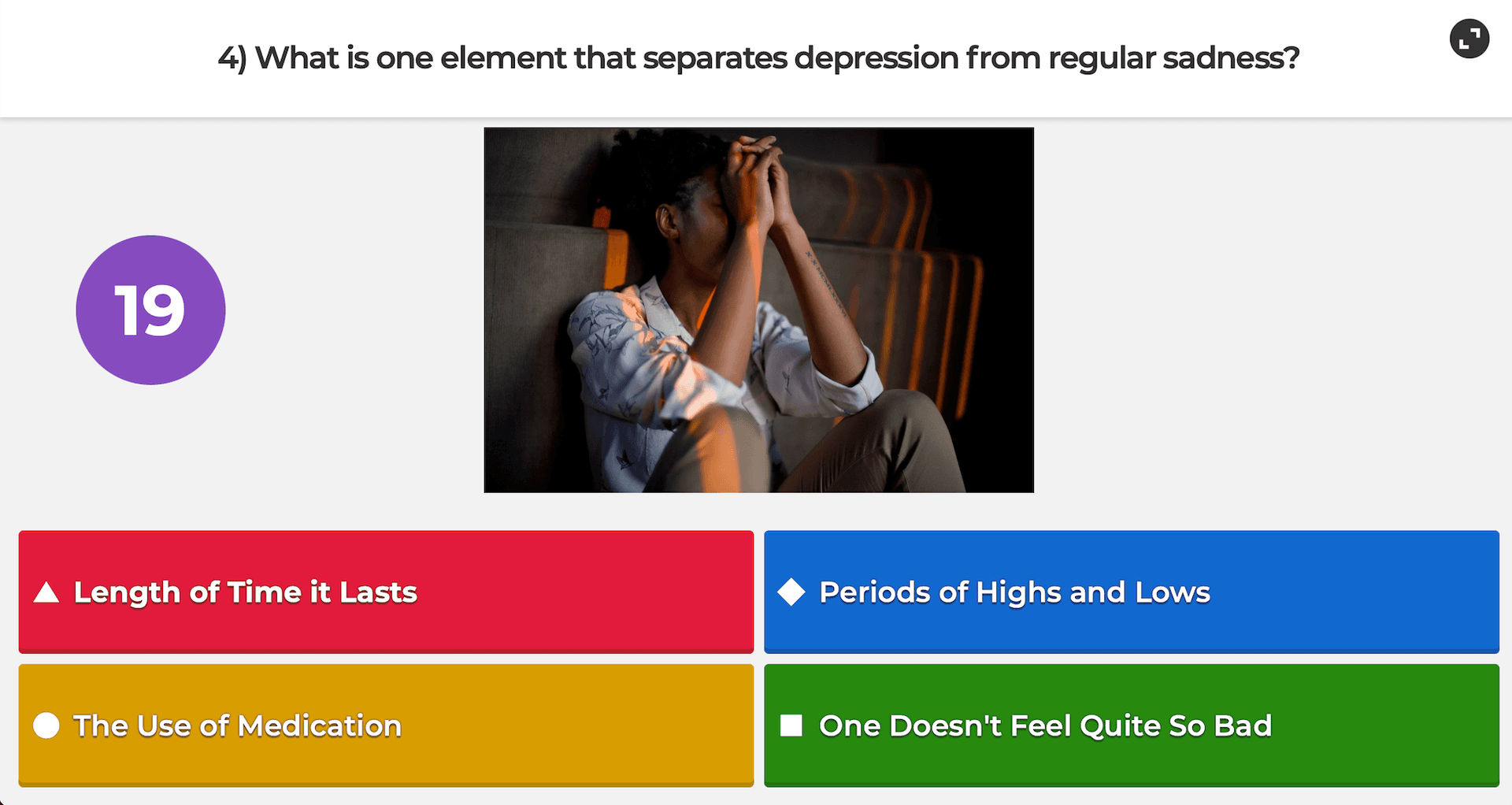 Through the magic of , a useful site for educators that allows you to build your own virtual quiz games, our students ran the virtual gauntlet, answering questions related to the five themes of Teen Health Week℠ 2021: , , , , and . In between multiple choice and true or false questions they could answer on their computer or mobile device, they learned facts about teen health. With some healthy competition, we hope our students took away some useful information that will help them make informed choices about their health throughout their lives.