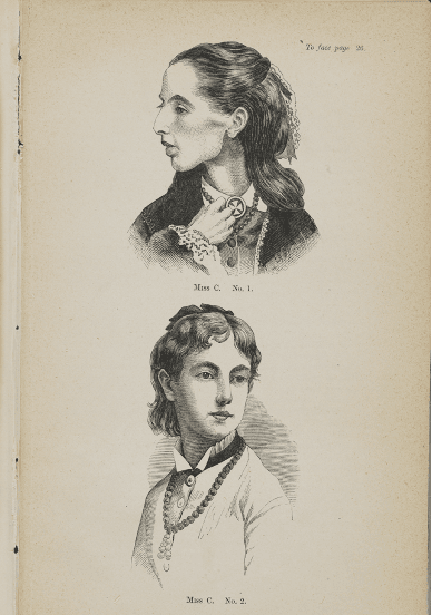 Image two: Woodcuts showing Miss C before and after treatment artist unknown